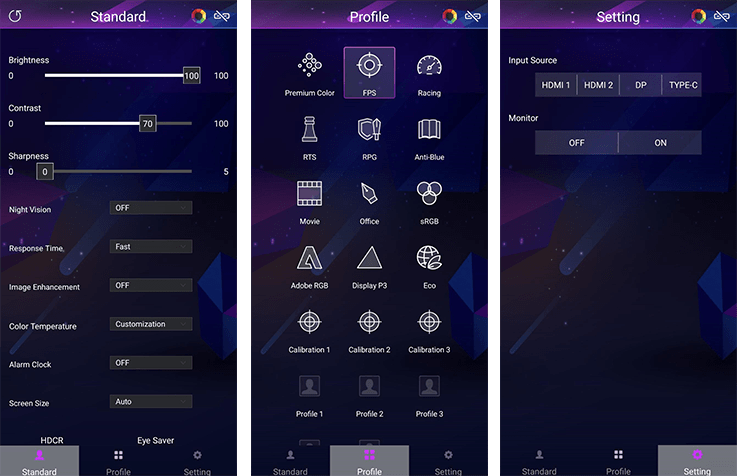 Control your MSI gaming monitor easily with the MSI Remote Display app on your Android phone or the Gaming Intelligence app on your PC. Adjust settings like contrast, brightness, and black equalizer, and customize with MSI Mystic Light LED effects.